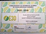 Obtention du LABEL 3ED (Ecole en Démarche Globale de Développement Durable)!!!!Bravo à toutes les classes pour l'implication dans ce projet, aux efforts participatifs de la cantine...reconnus par la commission académique.